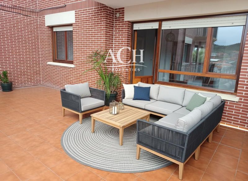La terraza es amplia, con una zona de comedor y otra de relax.